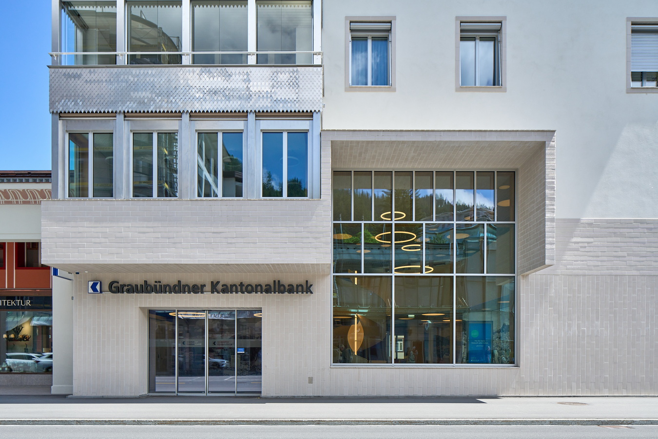 An der Promenade in Davos Platz entstand der moderne Neubau des Regionalsitzes der Graubündner Kantonalbank. In dem Gebäude befinden sich nebst der Bank, ein Restaurant, zwei Geschäfte und 19 Mietwohnungen. Die Gemeinde hat zudem den Arkadenplatz neugestaltet, um ihn als öffentliche Begegnungszone zu nutzen. Die Parkplätze in der neuen Tiefgarage sind für die Allgemeinheit zugänglich, während separate Parkplätze für die Mieter der Wohnungen und die Kunden der Geschäfte bereitgestellt werden.